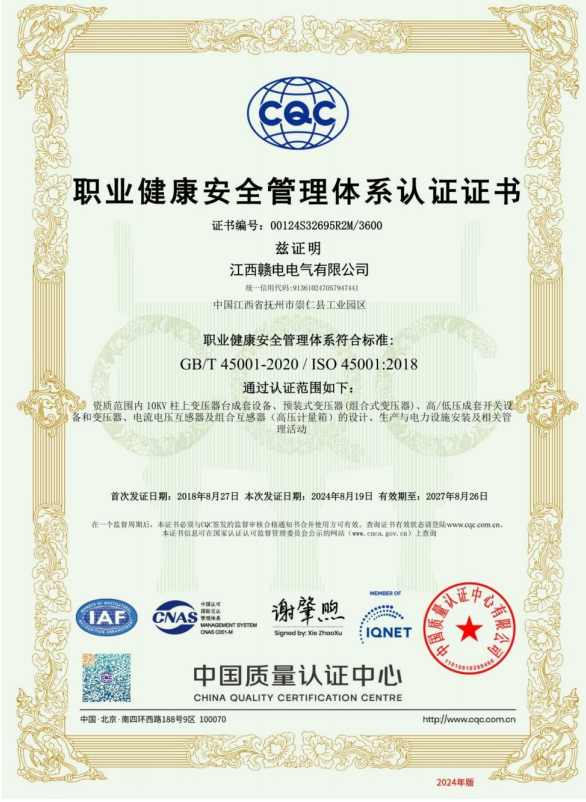 ISO9001 (Quality), ISO14001 (Environment), ISO45001 (Occupational Health and Safety), ISO50001 (Energy)
